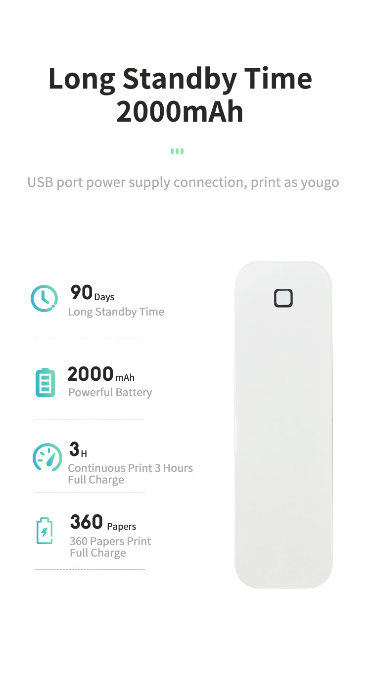 Battery duration: 5 hours of continuous printing