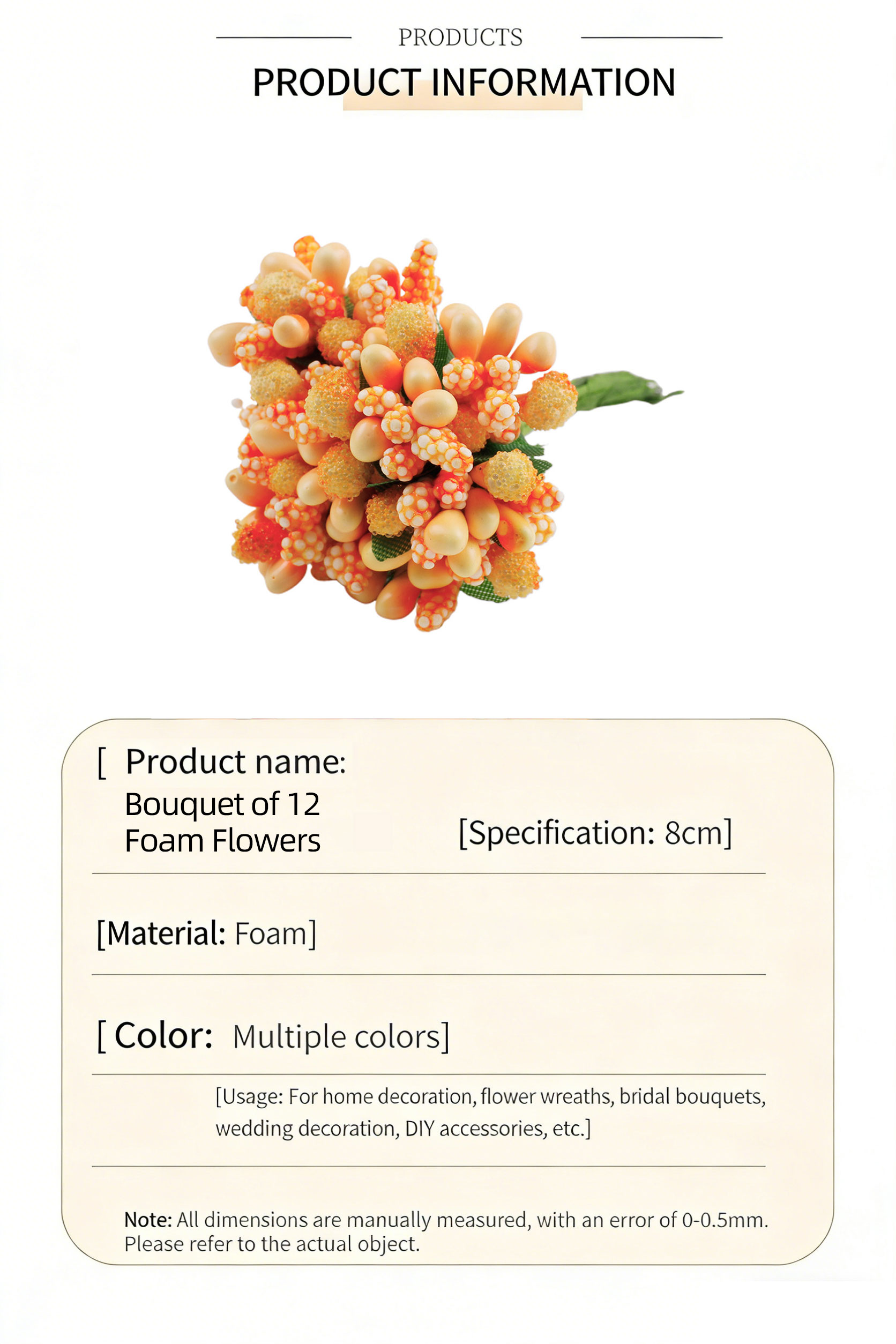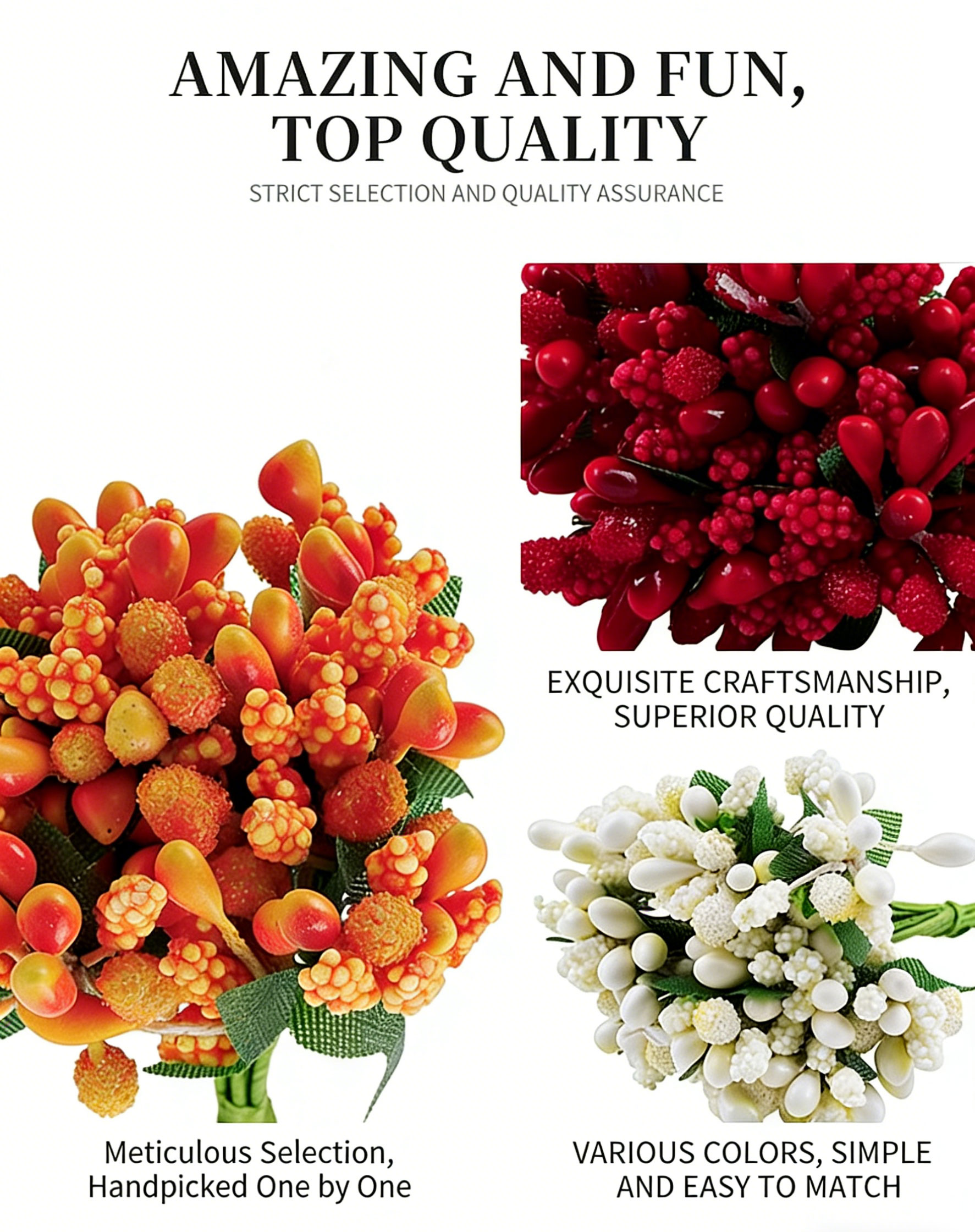 Crafted from lightweight, durable fabric and plastic, these stamen bunches are easy to shape and attach, holding their vibrant color and form without fading or wilting. They are ideal for making seasonal wreaths, bridal hairpieces, boutonnieres, and table centerpieces, bringing a touch of nature-inspired beauty to any project.