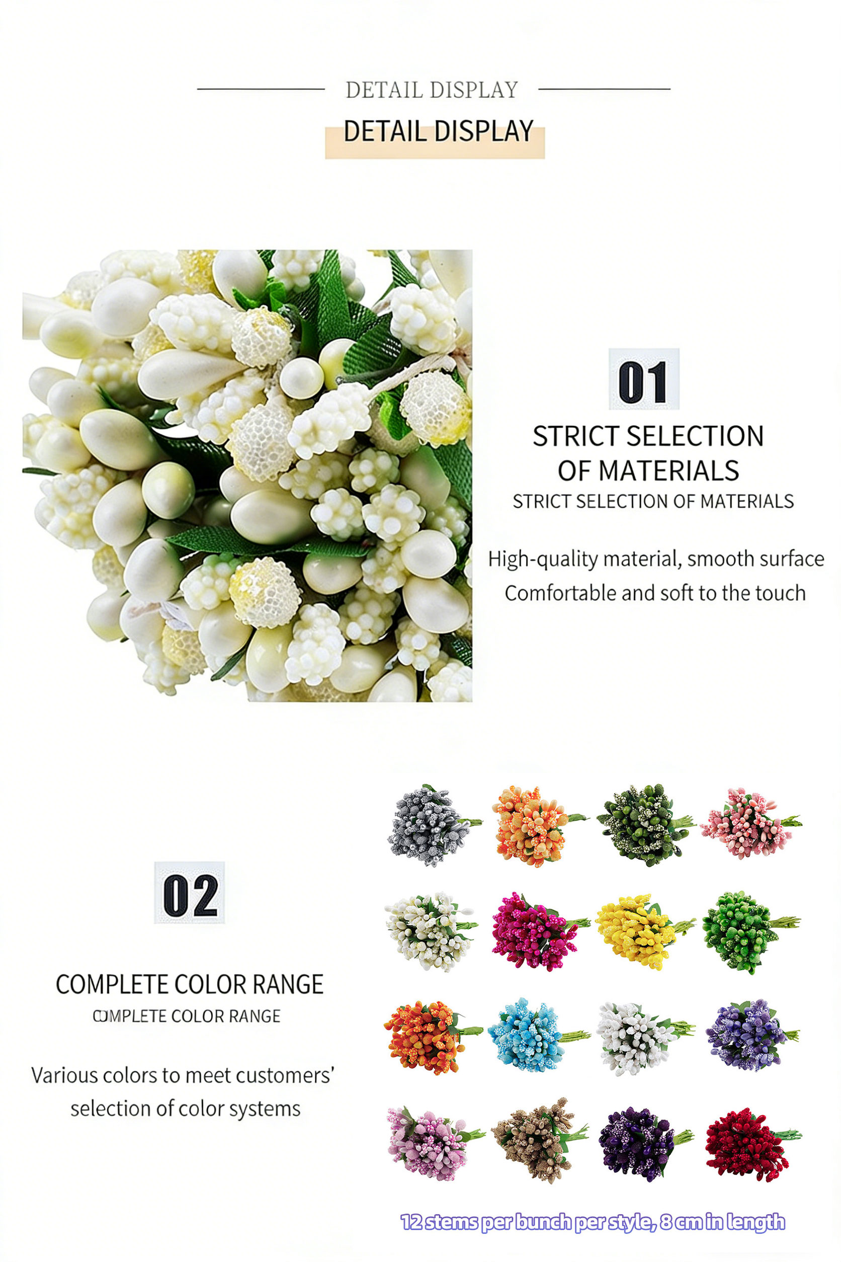 Elevate your handmade projects with these vibrant artificial stamen bunches, a versatile craft essential for adding a realistic, delicate touch to your creations. Each bunch features tightly clustered buds with subtle texture and lifelike color gradients, perfect for embellishing floral crowns, wedding corsages, hair accessories, gift wrapping, and home decor accents. With 16 vivid color options to choose from—from classic white and green to bold red and purple—they offer endless creative possibilities for DIY enthusiasts, crafters, and event planners.